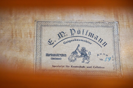 Ich biete hier einen 4-Saiter Kontrabass in 3/4 Größe mit einer D- Mensur von 107 cm, der von der Pöllmann Werkstatt in Deutschland, damals Markneukirchen in Sachsen, im Jahr 1959 erbaut wurde.
