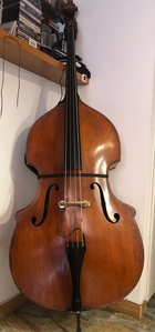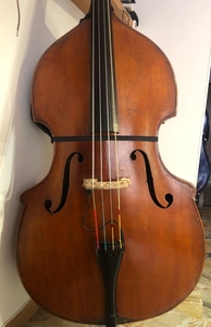 late 800 - early 900, mint conditions. excellent sounding bass. Great also for a possible 5 string conversion. String mensur 107 cm. D neck .Dimensions : body 113cm, upper bouts 52, lower bouts 68. Currently setup for jazz, but would make a fantastic orchestral instrument. Now located and visible in Bern, Switzerland. CHF 20.500
