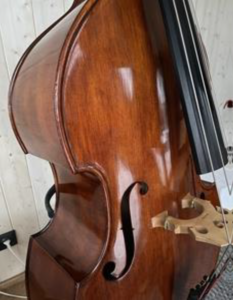 Der Kontrabass hat eine perfekte D-Mensur von 96 cm, um den Volumenverlust auszugleichen sind die Zargen aber genauso tief wie bei der 3/4 Größe, somit hat er einen ähnlichen Sound wie ein Standard 3/4 Bass.