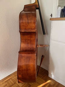 Hier biete ich diesen sehr schönen 3/4 Kontrabass, wahrscheinlich gebaut in Rumänien. massive Bauweise mit geradem Rücken, Ebenholz Griffbrett, Moser Patent Mechanik (höhenverstellbarer Steg)