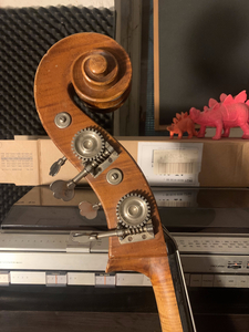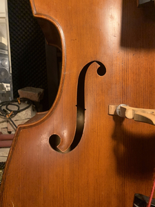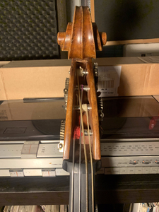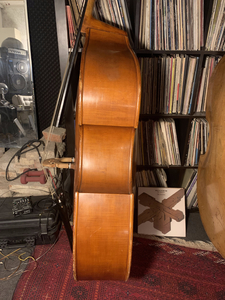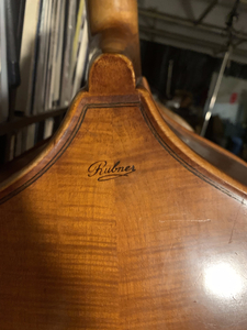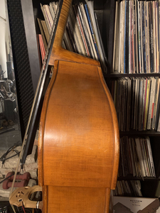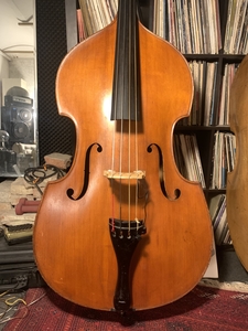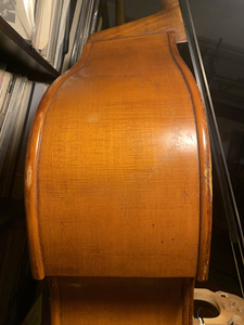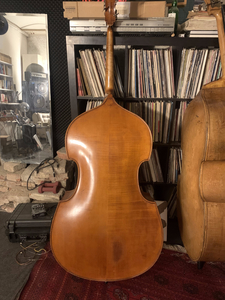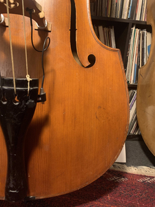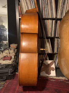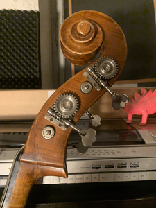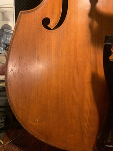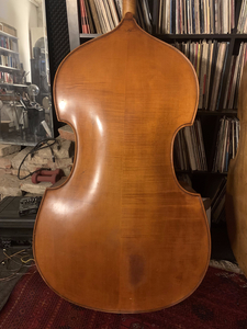 Wer sich mit Rubner Bässen etwas auskennt weiß, dass es diese immer wieder in unterschiedlicher Qualität auf dem Markt gibt - bei diesem hier handelt es sich um ein besonders gut klingendes Modell aus den späten 50er Jahren. Die Decke ist aus einem Stück, der Boden zweiteilig. Der Bass hat rein optisch schon ein bewegtes Leben hinter sich, hat aber einen Klang, den ich den meisten Meisterinstrumenten (alt wie neu) vorziehe und wurde in Wien im Atelier Ramseier-Gorbach (Wiener Musikverein) her- und eingerichtet. Der Bass war bis vor kurzem mein Hauptinstrument, ist leicht zu spielen, hat viel Sustain, einen herrlich schnellen Punch/Attack mit einem lauten, schön holzigen, klar definierten und sehr durchsetzungsfähigen Ton in allen Lagen und wird von Kollegen wie auch Tontechnikern zwischen Wiener Konzerthaus und Jazzclub in den höchsten Tönen gelobt. Auch kommt der Bass im mittleren Jazzclub bei entsprechender Spielweise gut ohne Verstärkung aus (wie alle Bässe die mich interessieren).