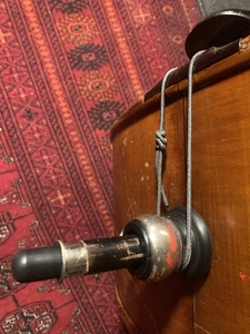 Der Bass hat noch seinen originalen Rubner Steg (mit Moser Upgrade), den original Saitenhalter mit Genssler Aufhängeseil und seinen originalen höhenverstellbaren (!) Holzstachel, dieser steht dem Bass gut, kann aber auf Wunsch zB gegen einen „traditionellen“ ULSA Stachel ausgetauscht werden. Das Griffbrett ist aus Afrikanischem Ebenholz gefertigt und von einer Qualität, wie es sie heute laut Geigenbauer neu gar nicht mehr zu kaufen gibt. Im Moment ist der Bass mit Peter Infeld Prototypen (E+A) und Gamut Darm (D+G) besaitet, Evahs oder Spiros stehen dem Bass ebenfalls sehr gut und bei entsprechendem Setup gäbe der Bass auch einen fantastischen Orchesterbass ab. Auch ein Umbau zum 5 Saiter bietet sich laut Geigenbauer an, fände ich aber schade, der Bass ist genau richtig wie er ist…