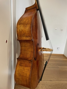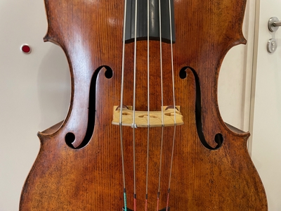 Das Instrument wurde vom Hersteller "antikisiert", ist aber relativ neu (ca. 10 Jahre alt) und wurde nach Schätzung meines Bassbauers in Rumänien hergestellt.