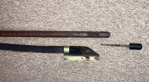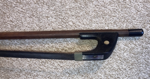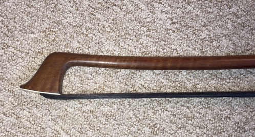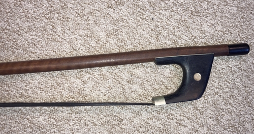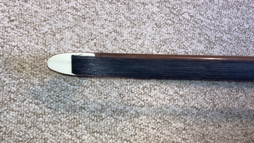 Higher than modern German bows, this unstamped bass bow possibly dates from early to mid 20th century. It is in very good condition, the screw works as it should and there is a lot of hair, so the bow is immediately playable.