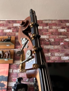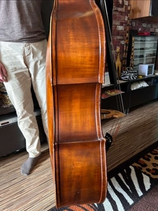 Zum Verkauf steht ein 3/4 Kontrabass mit Zettel, erbaut von Franz Ledergerber, ca. 1990 in der Schweiz. Der Bass wurde bei den Kontrabassbaumeistern Kanzian & Traunsteiner in Wien gekauft, die Rechnung ist vorhanden und wird beim Kauf dazugegeben. Der Bass befindet sich in einem einwandfreien Zustand, (er wurde von Kanzian & Traunsteiner restauriert) und ist sehr komfortabel zu bespielen. D Mensur ca. 105cm, gewölbter Boden, MPM Stegschrauben, Bender Titan Stachel, Thomastik Belcanto Saiten, C-Extension, diese ist komplett und schadlos (bei dieser Art von Extension muss kein Loch durch die Schnecke gebohrt werden) reversibel. Testen und besichtigen ist nach Terminvereinbarung selbstverständlich möglich! Ausschließlich in Wien/Österreich! Privatverkauf, keine Rücknahme, keine Garantie, keine Sachmängelgewährleistung.
