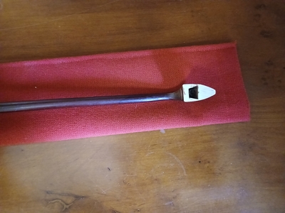 Zum Verkauf steht ein dunkler Kontrabassbogen ohne Frosch. Der Bogen weist keine Brüche oder Risse auf. Vermutlich deutsche, eventuell auch französische Arbeit. Ein interessantes und lohnendes Restaurierungsprojekt für Fachleute oder Sammler.