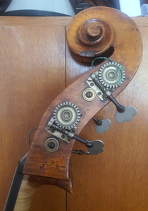 Ein wunderschöner Bass mit Durchsetzungskraft und großem Ton und unglaublich ausgewogen. Laut Bernhard Kort von ca. 1850. Ich habe ihn Jahrelang unverstärkt in verschiedenen Ensembles im Berich Jazz/Improvisierte Musik gespielt. Sollte auch sehr gut als Solobass funktioneren.