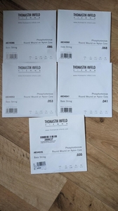 Einmal aufgezogen, war leider ein Fehlkauf. Sind gekürzt, waren auf einem Tacoma Thunderchief drauf mit normaler Longscale Mensur. E-A-D + G-C