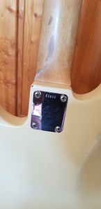 Die "Poti"-Gehäuse sind auf der Seite mit einer eingeprägten Schrift versehen (s. Bild): eine Zeile mit "250K AUD" und in der zweiten Zeile "304-6123". Hierbei steht die 61 für das Produktionsjahr und die 23 für die Woche. Der Baß ist zwar nach Seriennummer insgesamt mit dem Produktionsjahr 1962 datiert (s. Bild), aber es war/ist in der Produktion ("Plant") seit jeher durchaus üblich, daß einzelne Bestandteile aus unterschiedlichen, mithin aus vorangegangenen Jahren stammen.