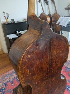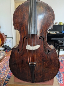 Kontrabass gebaut ca. 1840 von Ferdinand Seitz in Mittenwald, fachmännisch restauriert, in allen Teilen original, Lack stellenweise retuschiert, 102cm, sehr bequem zu spielen, kein Tausch, kann in der Region Mannheim/Ludwigshafen angespielt werden, nähere Infos gerne im direkten Kontakt