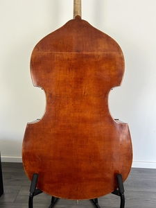 Der Kontrabass hat ein sehr komfortables, leicht spielbares und professionelles Setup: Bender Titan Stachel, Despiau Steg und hochwertiges Ebenholzgriffbrett.