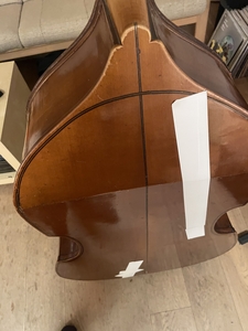 Laut Bassbauer ist der Bass vermutlich aus den 1950er Jahren, auf dem Zettel steht "Hermann Dölling Jr."