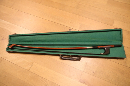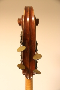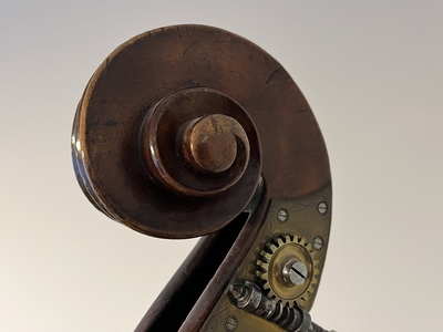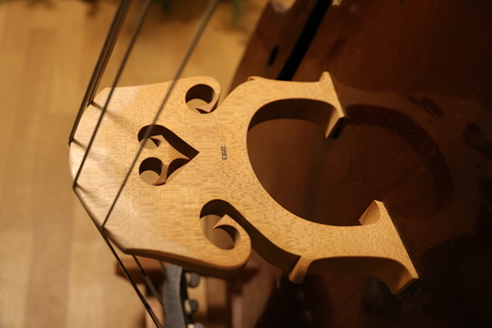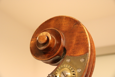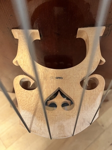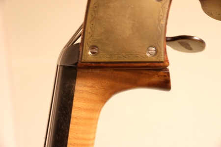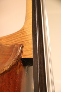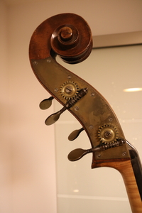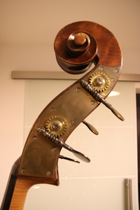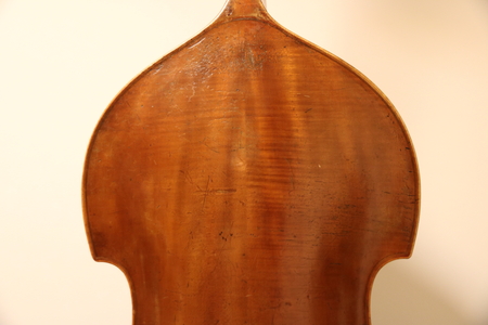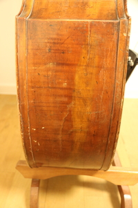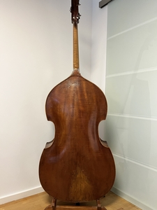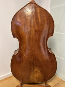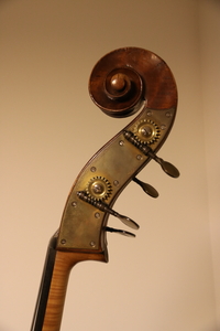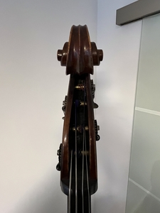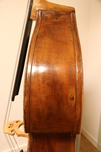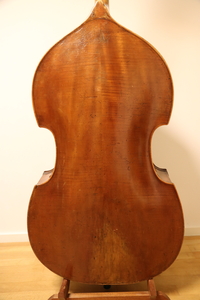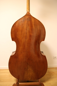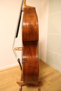 DerBaß (ein „4-Saiter**) wurde in Gambenform aus massiven Hölzern gebaut. Der Boden ist gewölbt. Boden und Zargen wurden aus leicht geflammtem Ahorn hergestellt, der Hals aus ungeflammtem Ahorn. Die Decke besteht aus gleichmäßig gewachsener Bergfichte mit kräftigen Winteriahren in mittelbreitem Abstand. Decke, Zargen und Boden weisen mehrere ältere, jedoch gutreparierte Risse auf.