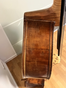 Der Bass weist typische Merkmale der Markneukirchner Herstellungsweise auf. Vermutlicher Zeitraum der Herstellung: um 1900.