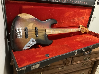 This baby is very resonant, it has been played a LOT and has a modest weight for a late 70’ies Fender : 4,4 kg for the complete bass