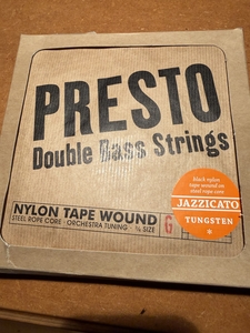 1 Satz Presto Jazzicato (black nylon tape wound on steel rope core), ca. 18 Monate alt, nur kurze Zeit davon aufgezogen, kaum gespielt, € 50,--, gratis Versand innerhalb EU