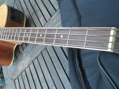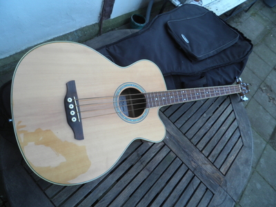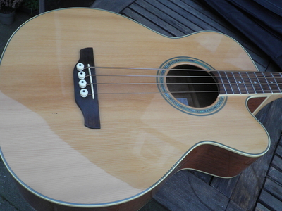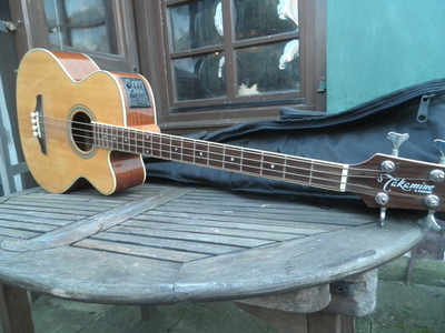 Verkaufe hier einen gut erhaltenen Akustikbass von Takamine aus der G Serie mit massiver Fichtendecke . Mit eingebautem Pickup und Preamp hat der Bass akustisch wie auch verstärkt , einen tollen Sound . Er macht sowohl auf der Bühne wie am Lagerfeuer immer eine gute Figur . Habe den Bass leider wenig gespielt , aber deshalb ist der Hals und die Bünde top erhalten . Mit dazu gibt es zwei Sätze Saiten, die lediglich nur einmal aufgezogen waren und ein neuwertiges Gigbag . Ansehen , anspielen und mitnehmen !