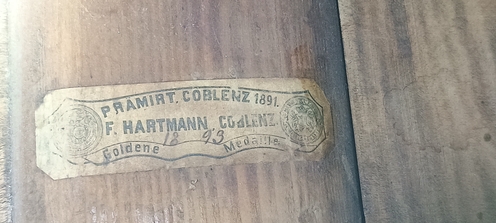 Das Stadtarchiv Koblenz kennt mehrere Mitglieder der Familie Hartmann als bedeutend für das mittelrheinische Musikleben des 19. Jahrhunderts, von Koblenz bis Köln, als Konzertmeister, Orchesterleiter und eben als Geigenbauer. Franz Hartmann hat sich vermutlich auf die tiefen Streichinstrumente spezialisiert.