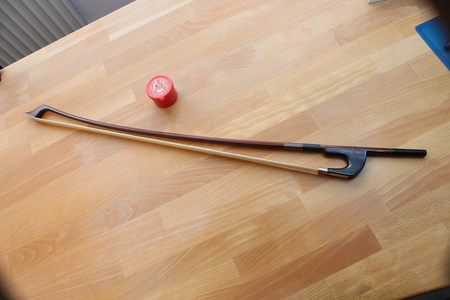 - gute eckige Fernambuk – Stange, Silbergarnitur, Bespannung völlig in Ordnung