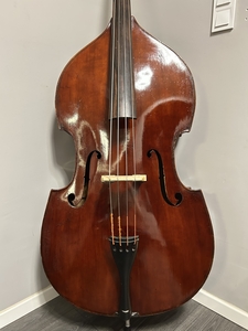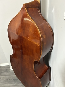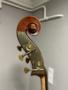 Alter, vollmassiver Kontrabass aus böhmischer Werkstatt mit Zettel.