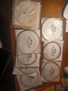 Hallo beisammen, Ich biete hier ein Konvolut an Kürschner-Musiksaiten an, sowohl umsponnene Darmsaiten als auch Florentiner (blanker Darm dichter Wicklung). Die Saiten waren nicht aufgezogen, die Verpackungen sind geöffnet worden, um die Saiten zu überprüfen.