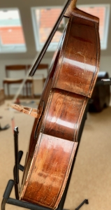 Schweres Herzens trenne ich mit meinem deutschen Kontrabass (wahrscheinlich aus Mittenwald oder Markneukirchen) mit einem sehr schönen rotbraunem Original-Lack.