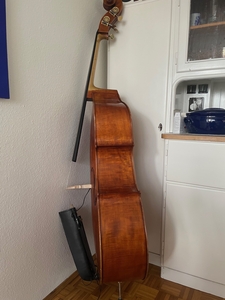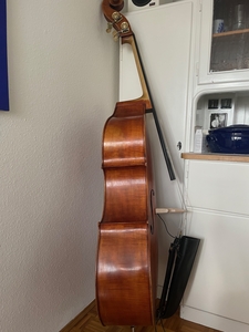 Hier biete ich diesen sehr schönen 3/4 Kontrabass, wahrscheinlich gebaut in Rumänien. Massive Bauweise mit rundem Rücken, Ebenholz Griffbrett. Der Bass ist eher für Jazz eingestellt mit sehr niedriger Saitenlage, absolut leicht zu bespielen. Der Bogenköcher und der Realist Pickup sind nicht Bestandteil des Angebotes.