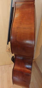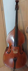 Dieser 4-Saiter Kontrabass wurde von einem Schwalmtaler Geigenbauer 2011 aus einem rumänischen Bausatz gebaut. Mensur: 104cm, D-Mensur