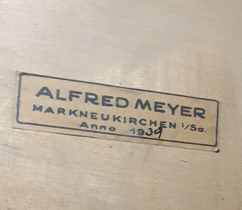 [Alfred Gustav Meyer (Markneukirchen) gründete seine Werkstatt im Jahr 1904 und zählt zu den außerordentlich geschätzten Meistern des deutschen Kontrabassbaus. Er wirkte in der ersten Hälfte des 20. Jahrhunderts im Zentrum der sächsischen Geigenbau-Tradition und erwarb sich einen hervorragenden Ruf. Nach seinem Tod wurde die Werkstatt von seinem Sohn Alfred Kurt Meyer weitergeführt, der die Tradition bis in die frühen 1970er Jahre fortsetzte. Instrumente aus dieser Werkstatt gelten heute als besonders geschätzt unter Kennern der deutschen Schule.]