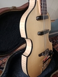 Massiver halbakustischer Windelband E- Bass in heller Lackierung als Einzelanfertigung. Ohne Beschädigung mit Ständer und dazugehörendem Gigbag. Baujahr ca. 2000- 2010.